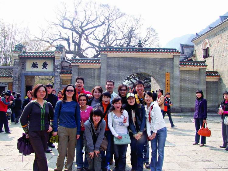 第三日清晨,整裝待發(fā)八點(diǎn)前往黃姚古鎮(zhèn)。賀州是粵東的一座新興城市,而黃姚,卻有著近千年的厚重。從古鎮(zhèn)入口前左邊的一條岔路走進(jìn)去,首先觸目的便是一條清澈的小溪、一棵參天的古榕樹,我們開始細(xì)細(xì)觀賞這個(gè)小鎮(zhèn)。古榕的軀干伸向小溪,又從空中垂下縷縷氣根,與水中的倒影連為一體。溪邊水井里清可見底,偶有小魚游動(dòng)。據(jù)說黃姚是按九宮八卦陣式布局,鎮(zhèn)上的石板街有8條,共99999塊青石板,最早鋪砌于清順治年間。年代久遠(yuǎn),不知有多少人走過,青石板已被磨得像鏡子般光滑,隱約泛著人影。橋下的姚江,如今看水依舊清碧,可是繁華不再,顯赫的牌匾也只能靜靜地訴說著昔日的輝煌。石板路的小村落很安靜,人們過著日常的生活,村婦們?cè)诰^溪邊,淘菜洗衣,交流信息,菜渣、閑話都隨溪水流去,并不對(duì)外來的游客有格外的好奇。孩子們快樂地嬉戲著,在那些蜿蜒的巷子里不時(shí)冒出他們快樂的喧嘩。宗祠府第這樣的舊時(shí)輝煌不經(jīng)意地散布于鎮(zhèn)上的民居之中,亭閣前的聯(lián)匾,記錄著文人騷客對(duì)黃姚的鐘愛,只是年代遠(yuǎn)去,如今物是人非。陽光下的青石板路上有時(shí)候也會(huì)躺著狗或者貓,你從它們身上跨過去的時(shí)候,它們會(huì)懶懶地翻翻眼皮,然后繼續(xù)睡在陽光里。雞們顯得勤快些,會(huì)邁著方步走在你前面東看看西瞅瞅,如果你不急,它會(huì)一直走在你前面,時(shí)間對(duì)它們沒有任何意義。還有那些老房子,任何一座都可能藏著一個(gè)故事。結(jié)了蛛網(wǎng)的窗欞恐怕已有了幾百年的歷史,但是沒有人把這當(dāng)成了不得的事情,一切如常,平靜隨意。
